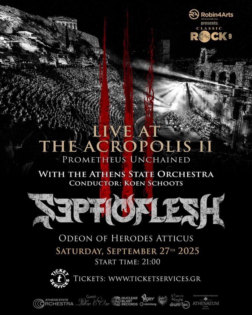 Το 9o Classic Rock, μετά από το περσινό επικό, εντός τριών ημερών sold out και την αποθεωτική υποδοχή του κοινού, παρουσιάζει ξανά στο Ηρώδειο τον μοναδικό ήχο των SEPTICFLESH σε συνάντηση με τη συμφωνική πανδαισία της Κρατικής Ορχήστρας Αθηνών, το Σάββατο 27 Σεπτεμβρίου.