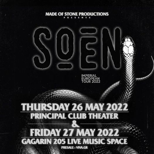 Τα εισιτήρια προ-πωλούνται ήδη στο https://www.viva.gr/…/soen-live-in-greece-imperial